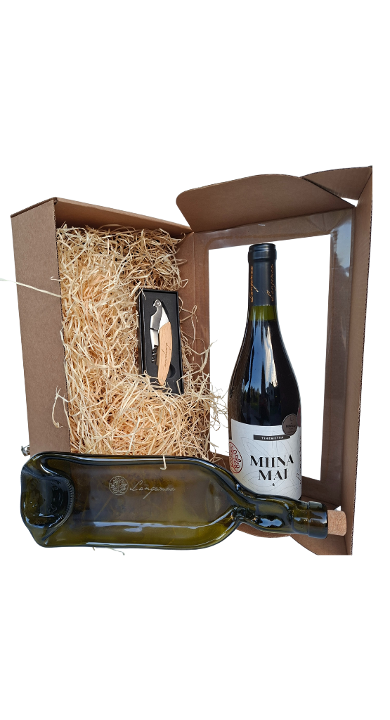 The Langemaa MIINA MAI gift set is a memorable gift for business partners. The set includes a 0.75L bottle of MIINA MAI Blackcurrant-Aronia Wine, which is a spicy, full-bodied red dry wine. The set also includes a wooden wine opener and a stylish snack tray made from a recycled wine bottle. All of this is beautifully packaged in a gift box, offering an exclusive gift experience.